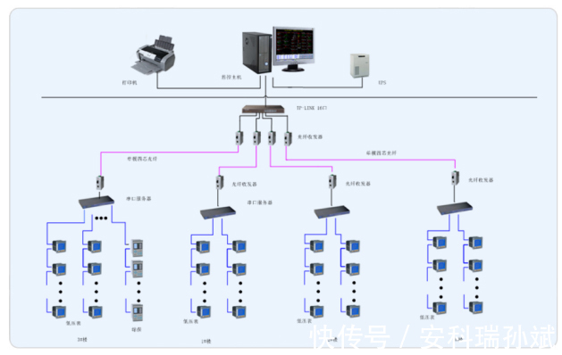 本项目10kV配电室共8台10kV/0.4kV变压器,变配电站内多功能仪表等设备采用RS485总线组网接入变配电站内的数据采集器,接入变电站值班室电力监控主机。