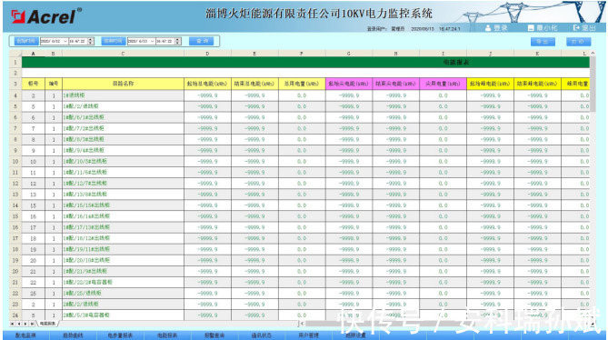 主要功能:具有起始时间和结束时间的时间选择框,选定想要查询的时间段后,通过点击查询按钮可查询出系统项目范围内所有配电回路的用电量。可通过导出按钮将报表以Excel形式导出保存,通过打印按钮进行报表打印。