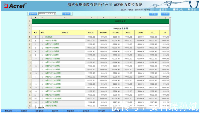 主要功能:查询各回路或者设备指定时间的运行参数,报表中显示电参量信息应包括:各相电流、三相电压、总功率因数、总有功功率、总无功功率、正向有功电能等。电参量报表也支持导出Excel格式文件,还可以根据用户要求导出PDF格式文件。